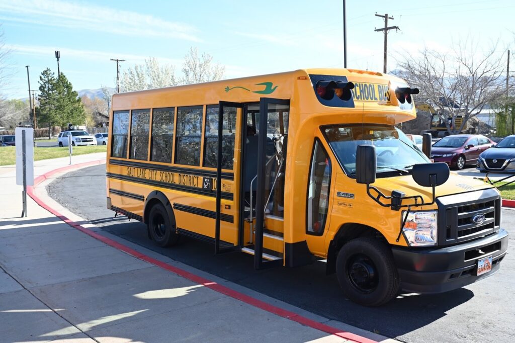 Showing additional community buy-in, the Salt Lake City School District joined the shift. By April 2025, the district owned and operated 12 electric school buses, including four Micro Bird Type A buses acquired in 2021 and four Blue Bird Type D buses acquired in August 2022 and November 2023. The district also installed twelve Nuvve chargers, powered by a solar array on the bus canopy. “It’s such new technology for the school bus industry. We’re gonna be the first to have one, even in Utah,” Ken Martinez, the school district’s transportation fleet manager, told the Deseret News at the time. The district listed reduced operating costs as a major benefit, with “substantial savings in fuel and maintenance expenses, with many routine maintenance needs reduced or eliminated entirely,” and with service lives of 18 to 20 years. It added that quieter operations contributed to driver satisfaction and improved student behavior. Plus, the bus routes focus on the Rose Park neighborhood, one of the most racially diverse neighborhoods, and also among the highest in air pollution. By 2022, the district had already saved 571 gallons of gas and eliminated 3.6 tons of emissions per year. The Utah Department of Environmental Quality estimates that electrifying all Wasatch Front school buses could eliminate 41,000 tons of pollutants.